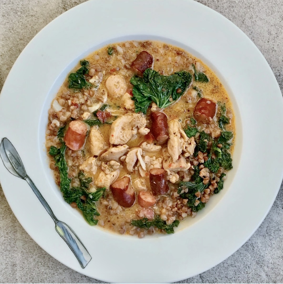 Propozycja podania: Poleca podawać ten gulasz z kasza gryczana z jarmużem i masłem.