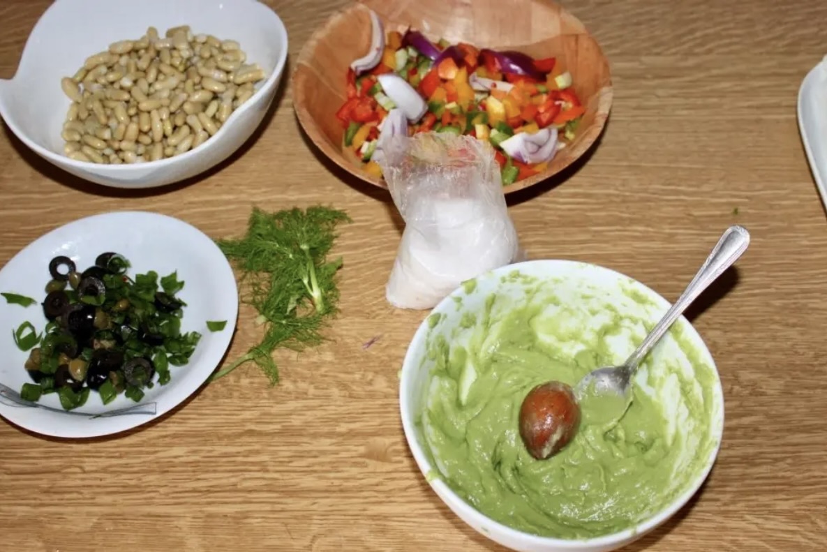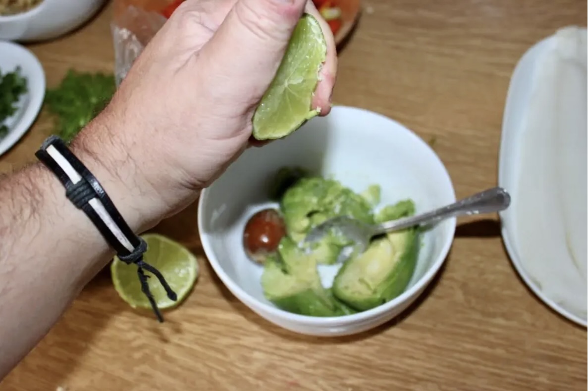 Dip z awokado: 1 dojrzałe awokado, 1–2 limonki, sól, pieprz.
