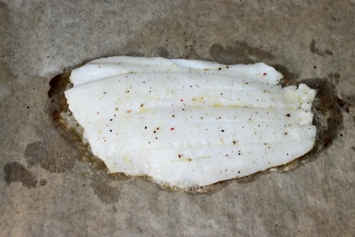 Filet z halibuta oprósz solą i świeżo zmielonym pieprzem.
