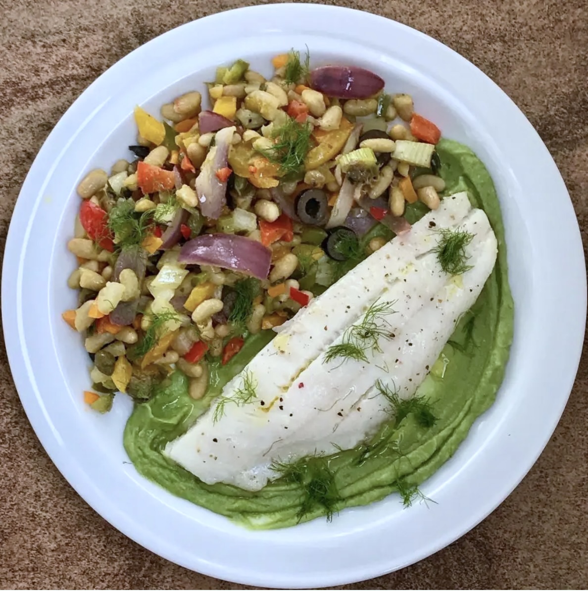 Obok lub na rybie wyłóż ciepłe warzywa z fasolką.