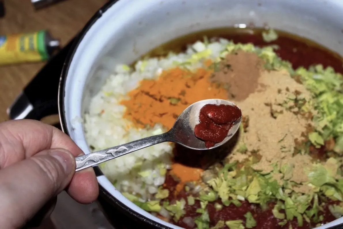 Dodanie warzyw i pomidorów: Dodaj starte pomidory lub przecier pomidorowy (zobacz przepis na domowy sos pomidorowy). Cebule obierz, posiekaj bardzo drobno i dodaj do garnka. Seler naciowy (wraz z natką) również posiekaj jak najdrobniej, a następnie dorzuć do potrawy.