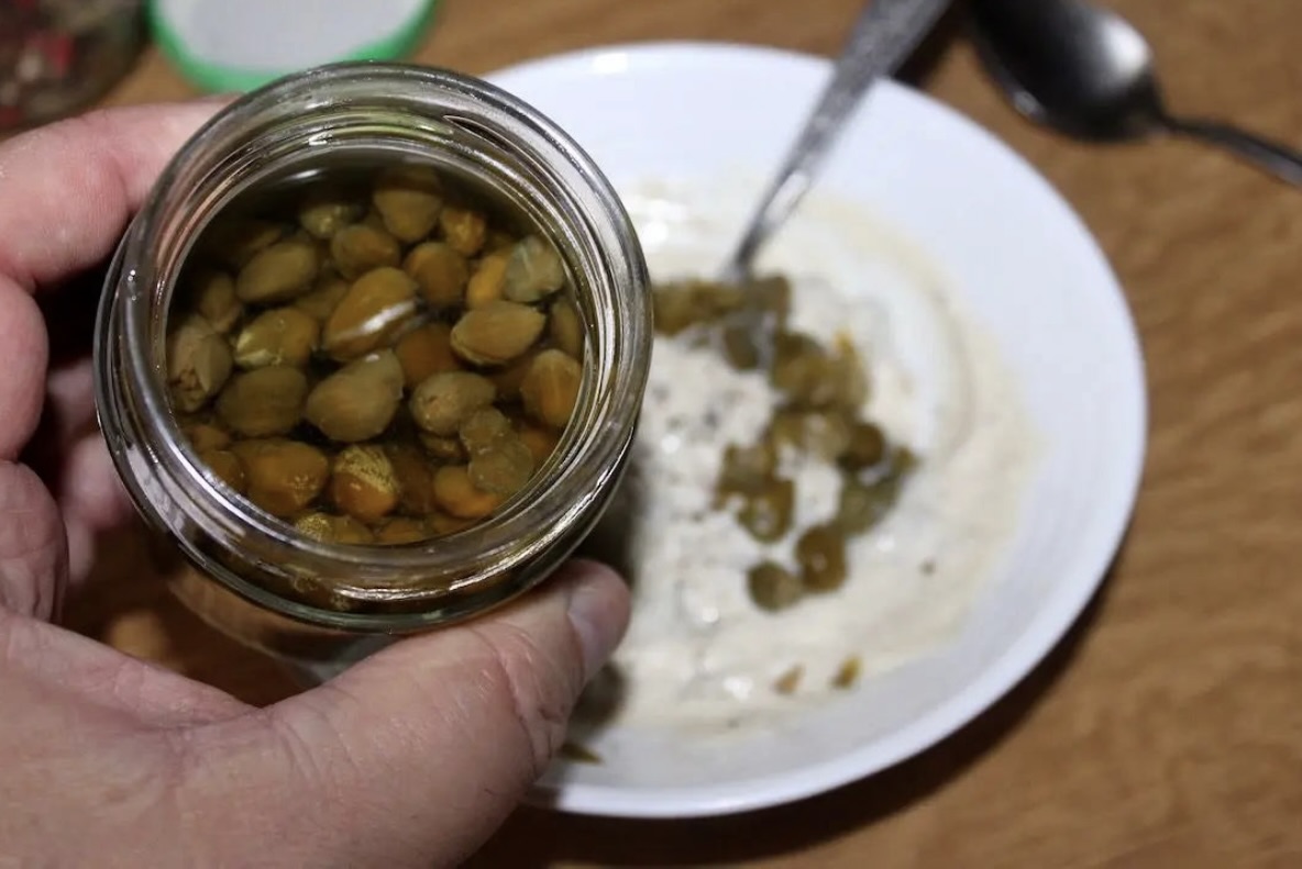Do małej miseczki nałóż kilka łyżeczek majonezu, a następnie dodaj 1-2 łyżki grubo posiekanych kaparów. Ilość kaparów należy dostosować do smaku, pamiętając, że makrela i kapary są słone.