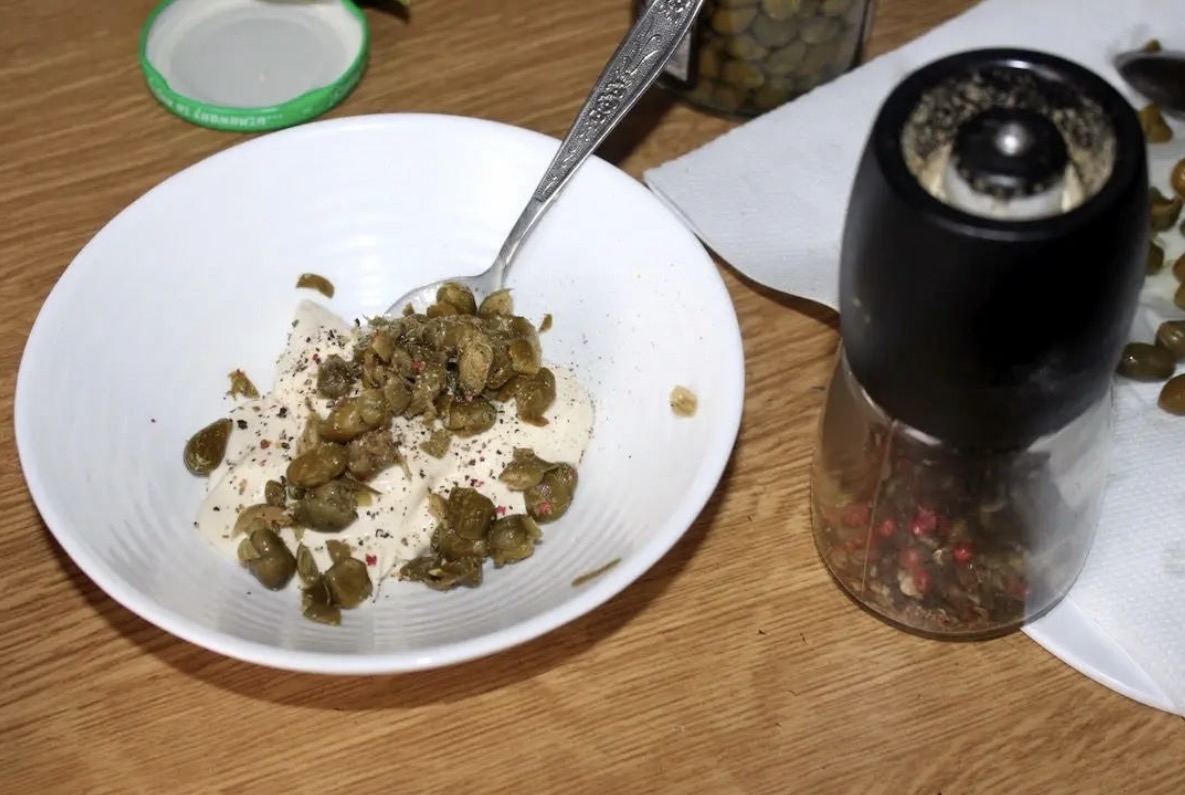 Dodaj jeszcze odrobinę majonezu z kaparami.