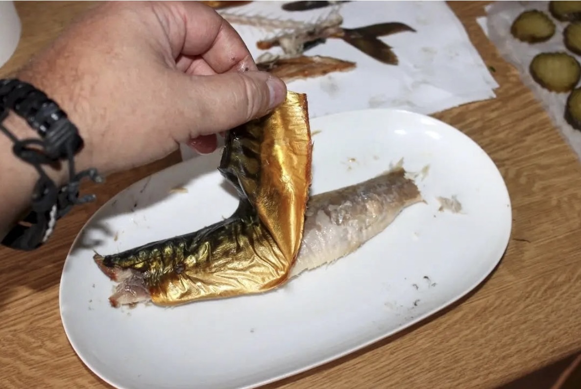 Makrelę „otwórz”, usuń kręgosłup i ości, a następnie podziel ją na dwa filety.