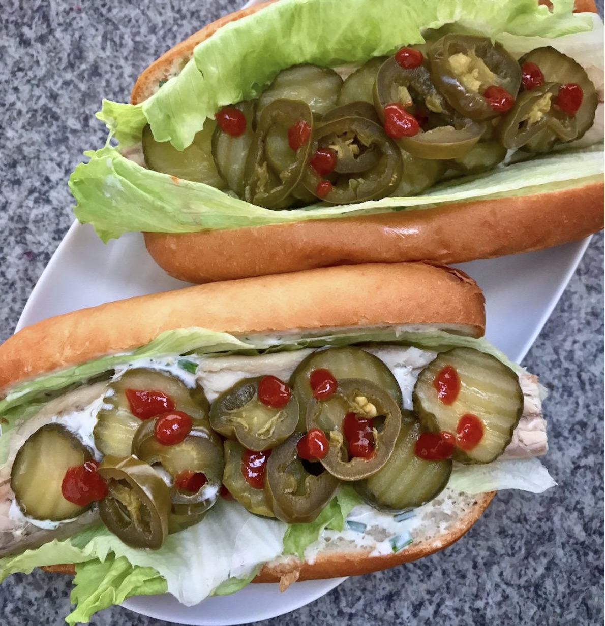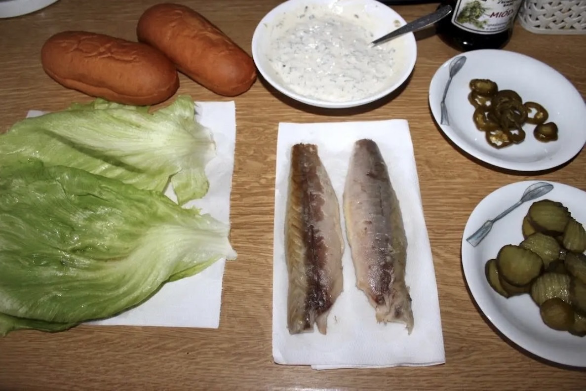 Hot dog z makrelą to bardzo popularne w Holandii tzw. szybkie jadło, które napotkać można w przydrożnych budkach i barach. Holendrzy, choć to naród bardzo pracowity i pragmatyczny, to finezji nie mają za grosz. Pewnie z tego powodu filet z wędzonej makreli jedynie odzierają ze skóry i wkładają do bułki. Tyle, absolutnie tyle i nic więcej. Fakt, doskonale czuć w takim skromnym zestawie wędzoną makrelę, jednak jak dla mnie potrzebne tutaj było coś jeszcze. Do hot doga dodałem m.in. ukochany przez Holendrów majonez, ale wzbogaciłem go o kapary. Całość wyszła wybornie. Polecam.
