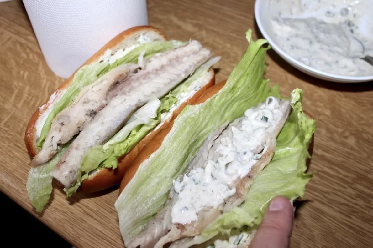 Przepis na to danie to wariacja na temat popularnego w Holandii „szybkiego jadła”, gdzie tradycyjnie filet z makreli wędzonej wkłada się po prostu do bułki. Ulepszona wersja zawiera majonez, kapary oraz słodką sałatkę szwedzką (ogórki słodko-kwaśne), aby zrównoważyć słony smak ryby.