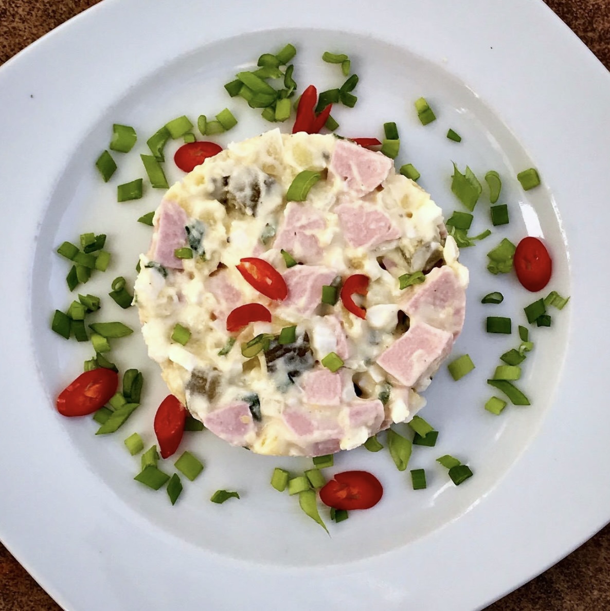 To prosta, klasyczna sałatka, której sekretem są odpowiednie proporcje i składniki, takie jak dobrej jakości ziemniaki sałatkowe oraz grubsze parówki (lub mortadela).