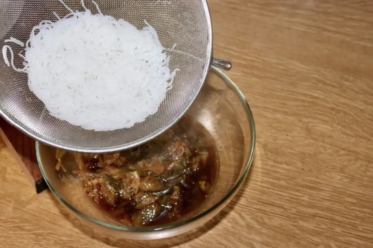 W międzyczasie przygotuj makaron ryżowy vermicelli według instrukcji na opakowaniu.