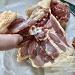 Oto piękne kurczęce udko. Odłóż je na bok, pora zająć się resztą ptaka. Prowadząc nóż wokół kości wykrój skrzydełko z korpusu kurczaka. Pora zająć się piersią z kurczaka. Prowadząc nóż wzdłuż mostka ptaka odkrój delikatnie pierś od korpusu kurczaka. Z wykrojonej piersi odkrój tzw. polędwiczkę. Z pozostałego korpusu kurczaka odkrój tzw. łój, czyli bardzo tłuste elementy ptaka. Nie będą Ci potrzebne.