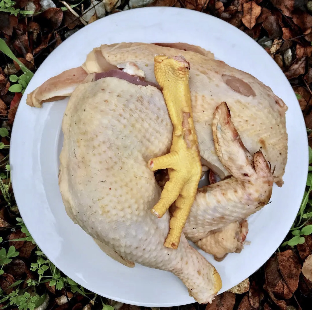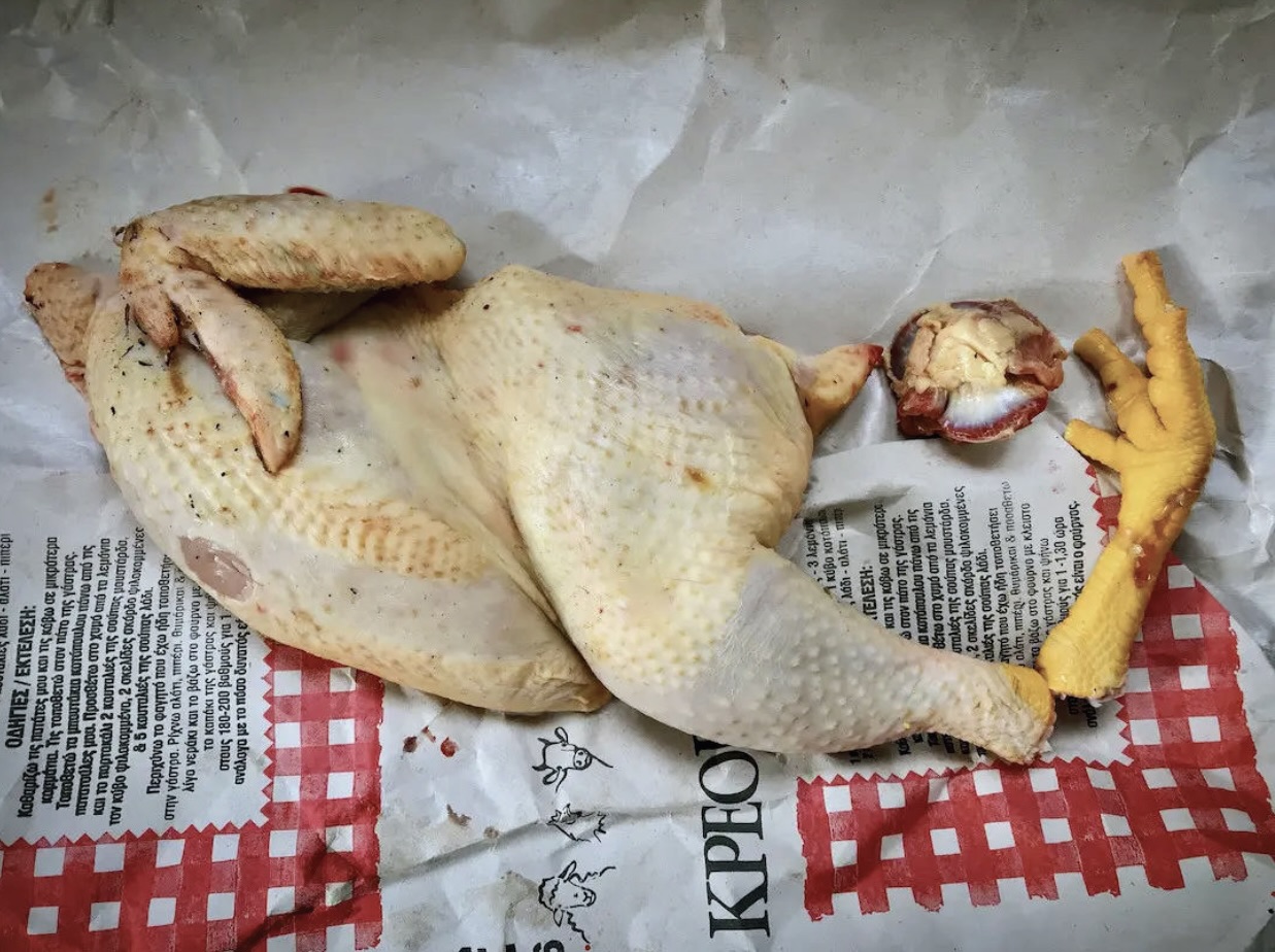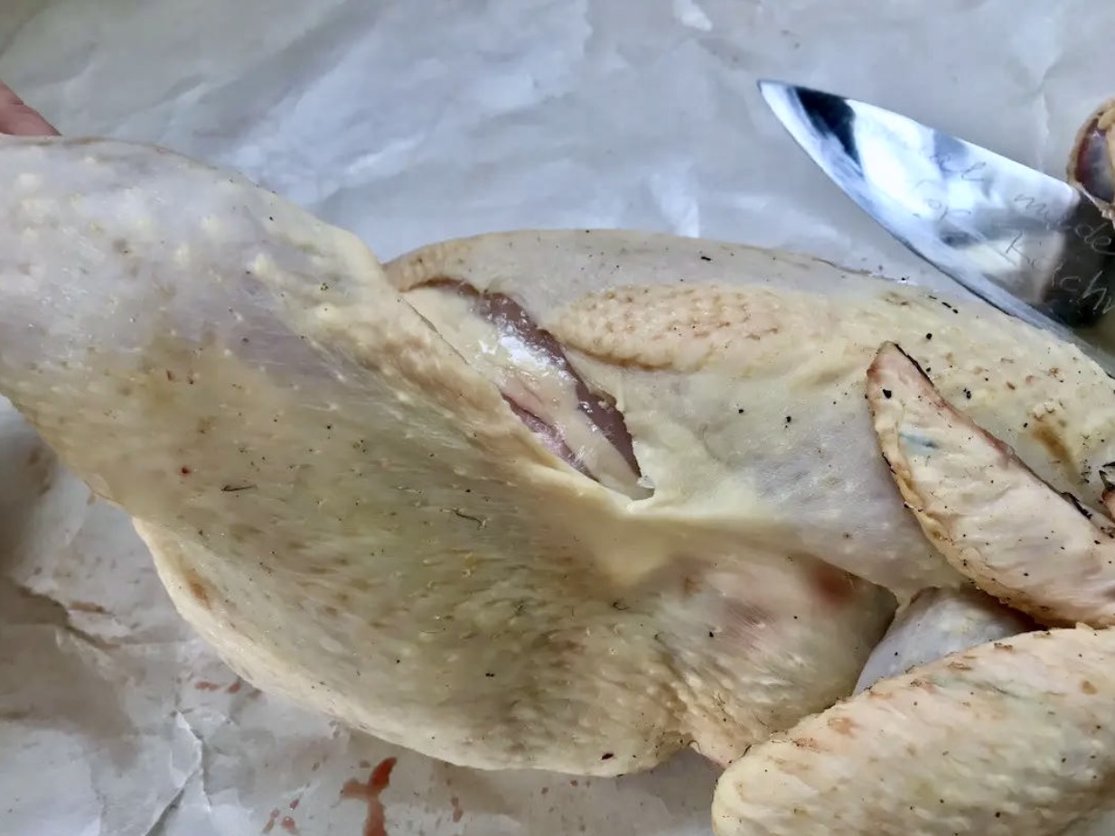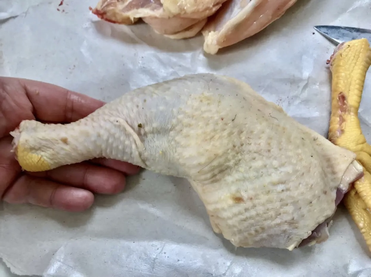 połówka wiejskiego kurczaka prosto od rzeźnika lub od baby