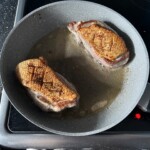 Smaż na małym ogniu przez kilka minut, aż tłuszcz się wytopi, a skóra stanie się rumiana i chrupiąca.