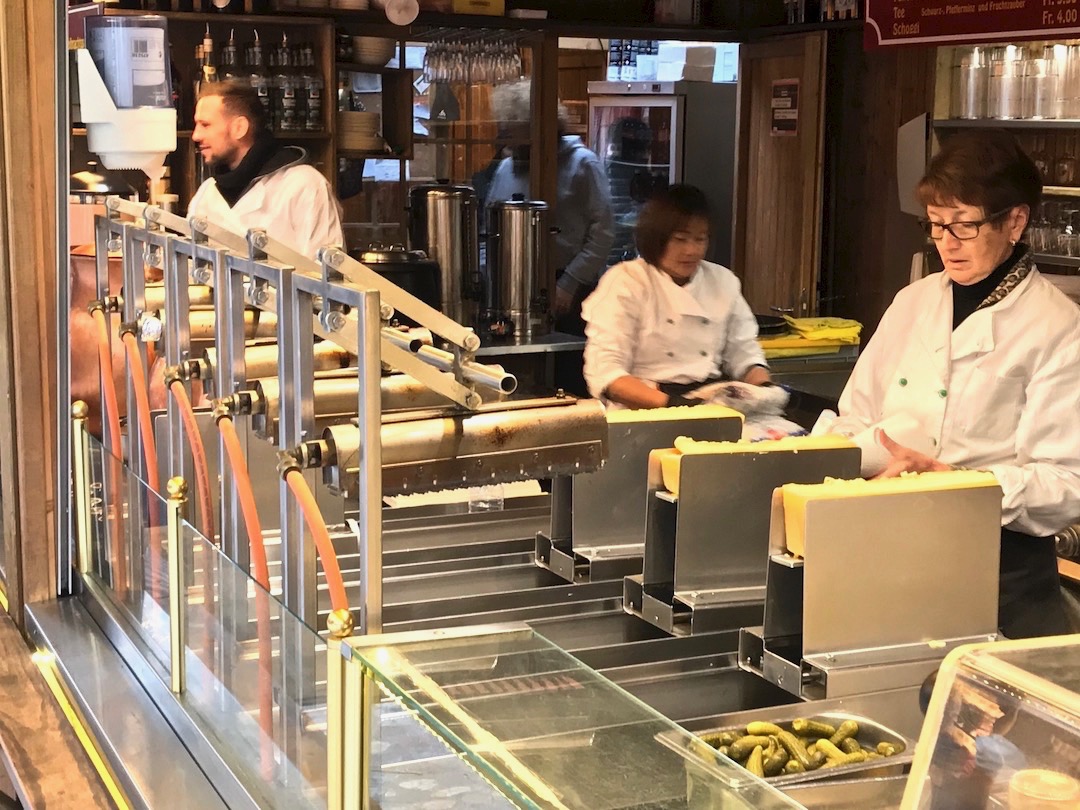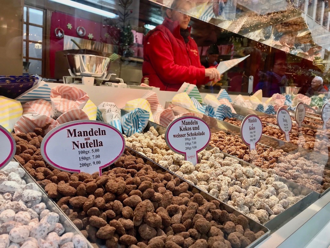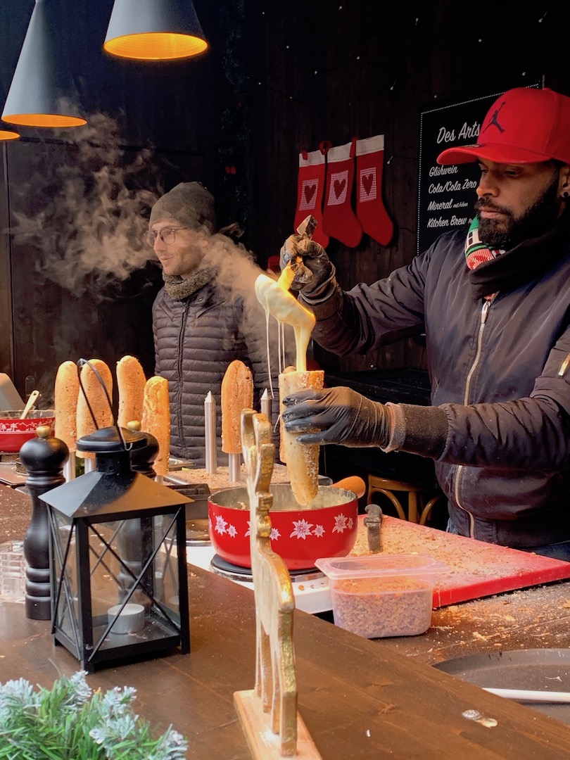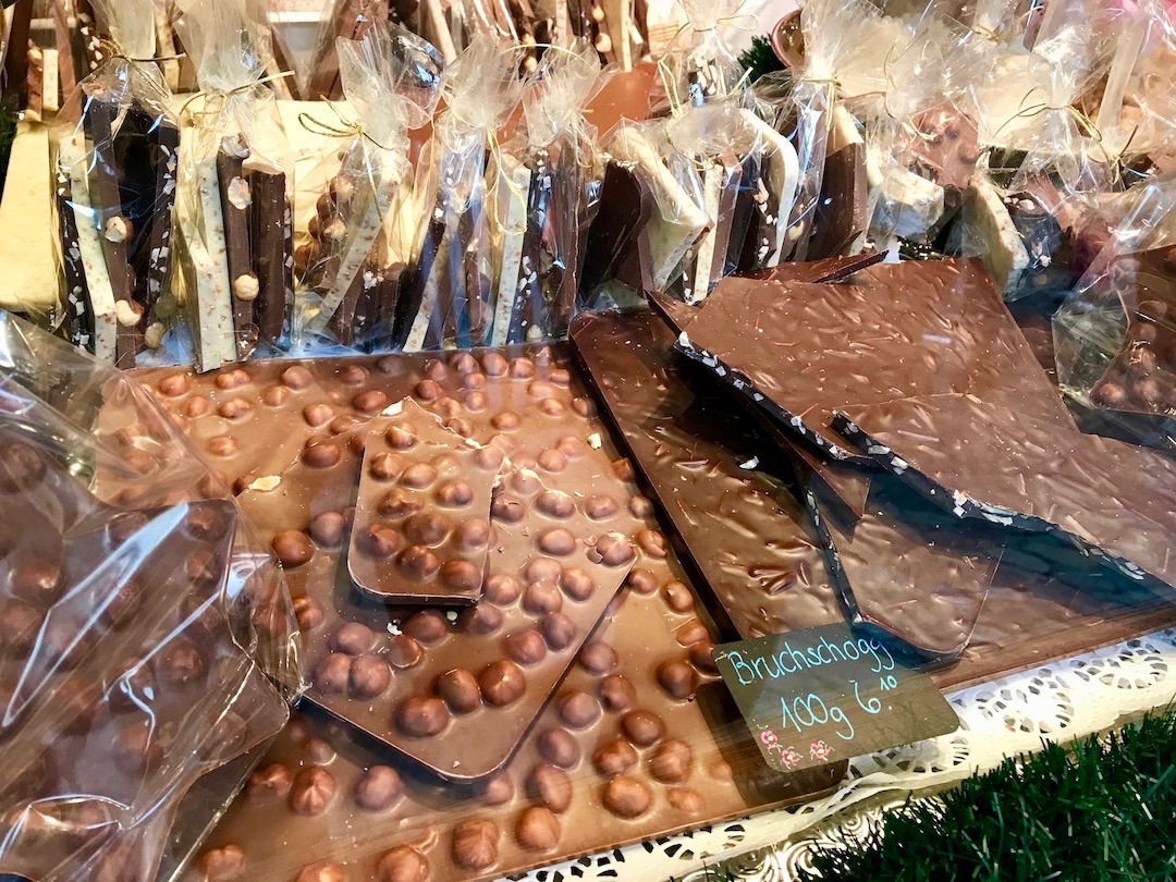 A co można zjeść na jarmarku bożonarodzeniowym w Bazylei? Czego dusza zapragnie. Oczywiście przede wszystkim spróbować należy szwajcarskiego specjału, czyli raclette. Ten pyszny stopiony ser podawany jest albo na kromce pieczywa albo razem z gotowanymi ziemniakami i kiszonkami. Po drugie czekolada oczywiście, przecież jesteśmy w Szwajcarii. Albo pitna, albo w wielkich płatach na wagę z najprzeróżniejszymi dodatkami. Dużo słodkości, dużo grillowanych kiełbas i mięs. Słynny płonący wzmacniany mocnym alkoholem grzaniec. Dużo…, zresztą zobaczcie sami. Zapraszam Was do Bazylei na jarmark bożonarodzeniowy.