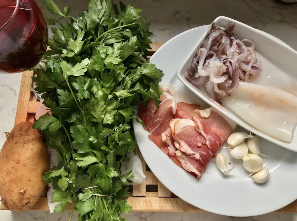 Kalmary faszerowane szynką to pyszne danie nawiązujące do kuchni chorwackiej. Jasne, że u nas nie dostaniemy tych małych, smacznych kalmarów z Adriatyku, ale też nie przesadzajmy. Te kupione u nas również są ok. Nie kupimy też w kraju chorwackiego prsuta, ale kupimy inne równie dobre szynki dojrzewające. Nie robiłbym zatem problemów z faktu, że składniki tego dania nie są oryginalne. Ważne, że całość smakuje dokładnie tak jak w Chorwacji podczas wakacji. Dlatego bardzo polecam Wam to pyszne danie.