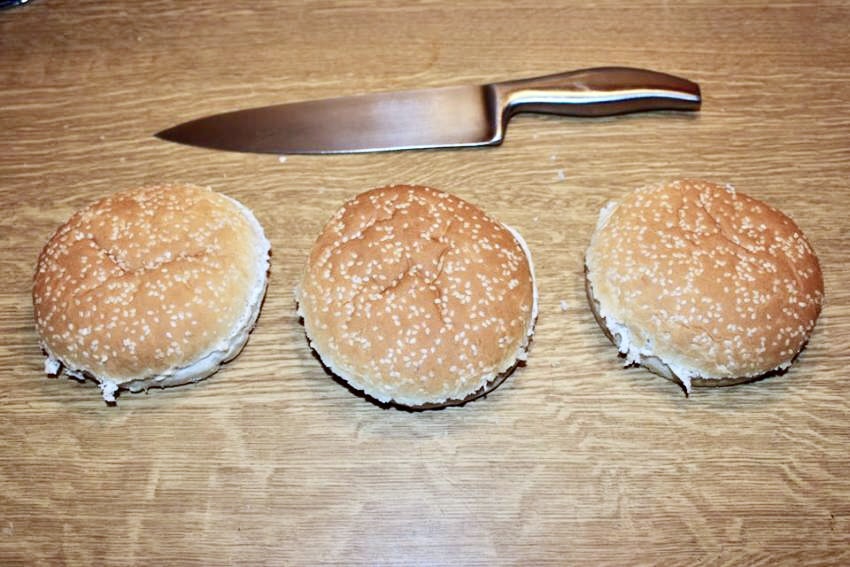 Pieczywo: 3 duże bułki do hamburgerów (pszenne, najlepiej z sezamem).