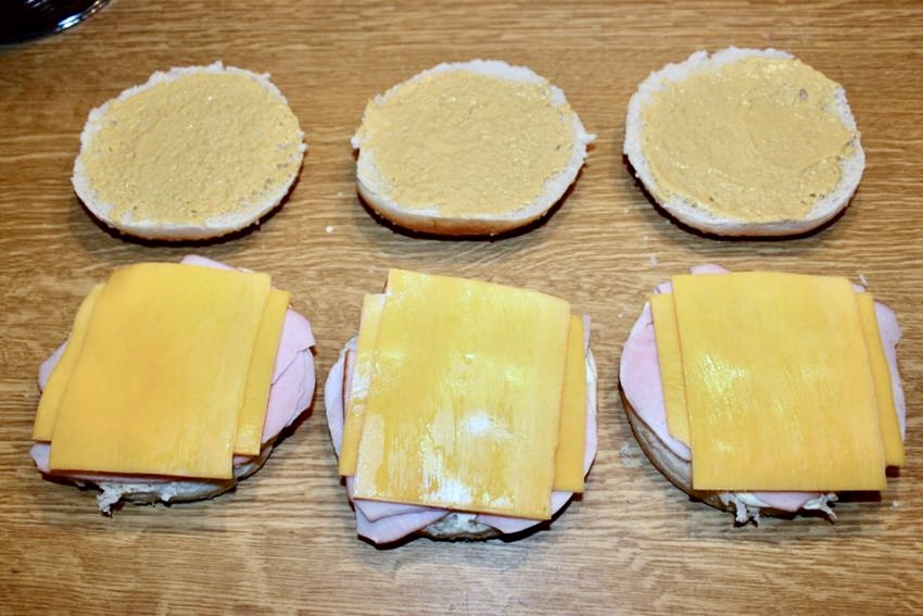 Zapiekanie: Wstaw kanapki do piekarnika nagrzanego do 150 stopni. Zapiekaj przez około 5 minut. Pod koniec możesz włączyć funkcję grillowania (grzanie od góry), aby bułka stała się chrupiąca i rumiana.