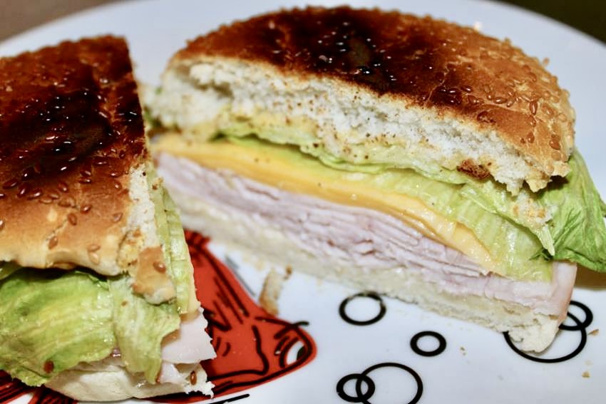 Kanapka z indykiem taka z dużą ilością wędliny to moje wspomnienia z „Wielkiego Jabłka”. Ilekroć ją jadam przenoszę się myślami do tego jedynego na świecie miasta. Oczywiście nie ma w tej kanapce nic nadzwyczajnego i odkrywczego, ale naprawdę można ją polubić. A nawet stać się jej wielkim zwolennikiem. Jej skład zwykle „wypełnia” nowojorskiego bajgla, ale ponieważ ten rodzaj pieczywa jest u nas nieosiągalny (a ten, który jest bywa zwykle niejadalny) użyłem bułki do hamburgerów. Kanapka z indykiem najlepiej smakuje podgrzana i pozostawiona następnie na 2 minutki do przestygnięcia. Ser pozostaje wtedy lekko „lejący się”, bułka jest chrupiąca, a wędlina ciepła.