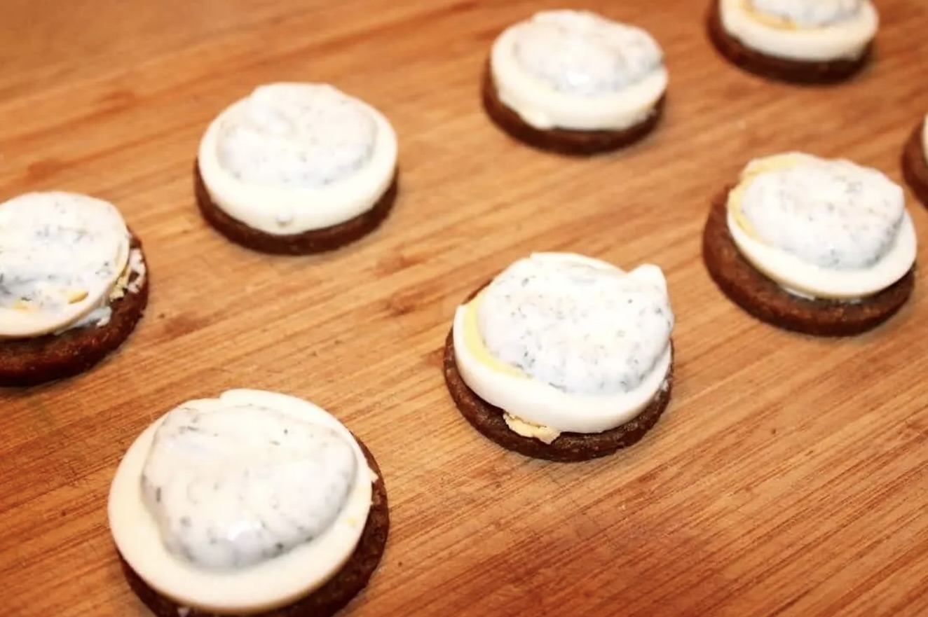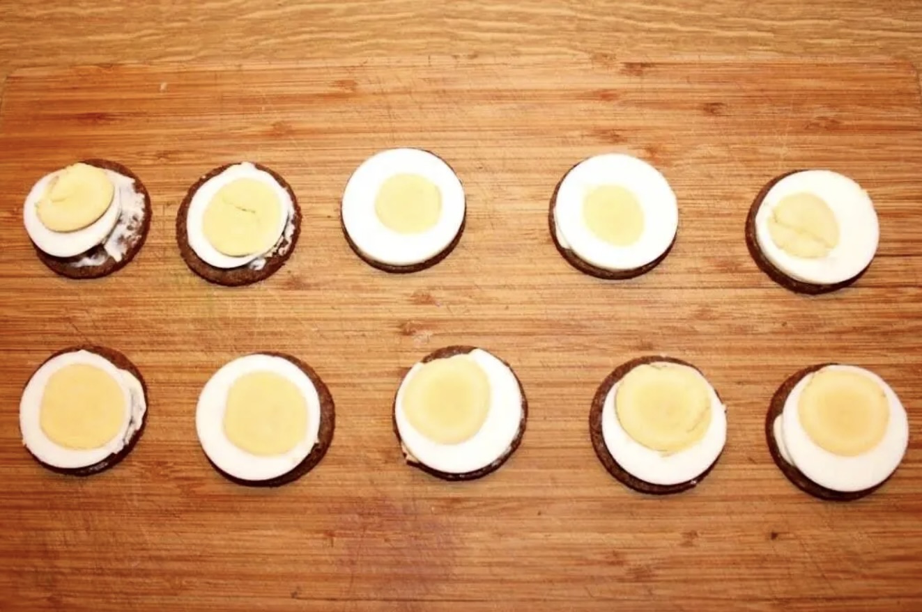 Następnie nałóż po jednym plasterku gotowanego jajka.