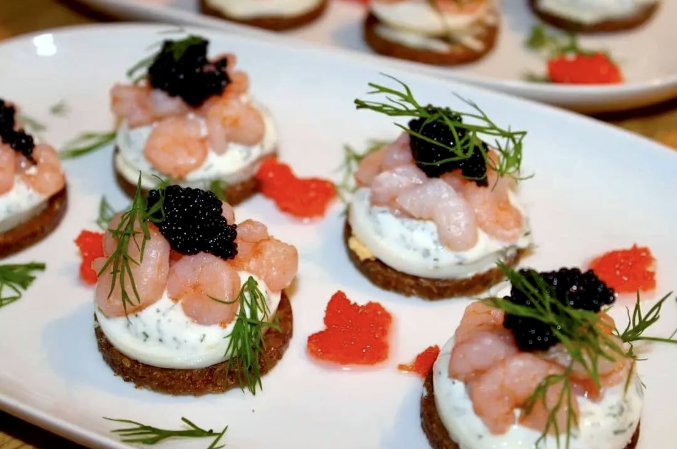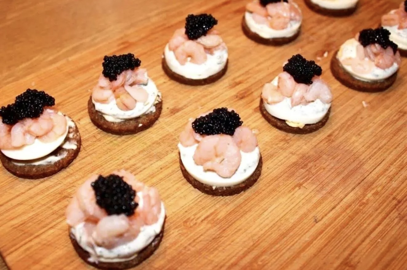 Kanapki szwedzkie z krewetkami są gotowe do podania.