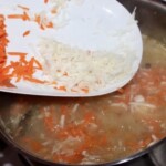 Gdy mięso przestygnie, oddziel je od kości i pokrój w drobną kostkę, a następnie wrzuć z powrotem do zupy.