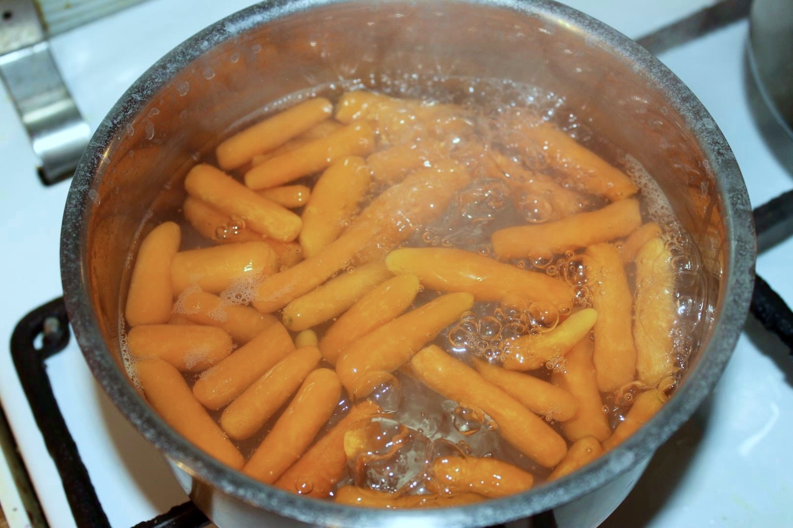 Warzywa: Ugotuj mrożoną marchewkę i groszek. Ważne, aby warzywa były „al dente” (nierozgotowane). Groszek mrożony jest lepszy niż ten z puszki, bo lepiej smakuje w tym daniu.