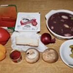 W międzyczasie pokrój papryki i ogórki konserwowe w cienkie paseczki, a pieczarki w plasterki.