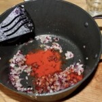 Zdejmij garnek z gazu, wsyp mieloną, słodką paprykę (2 łyżeczki), dokładnie wymieszaj.