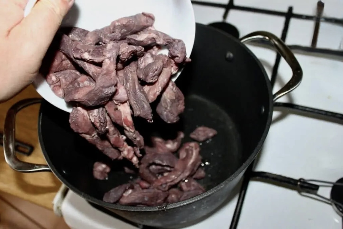 W garnku rozgrzej smalec i smaż mięso kilka minut na mocnym ogniu.