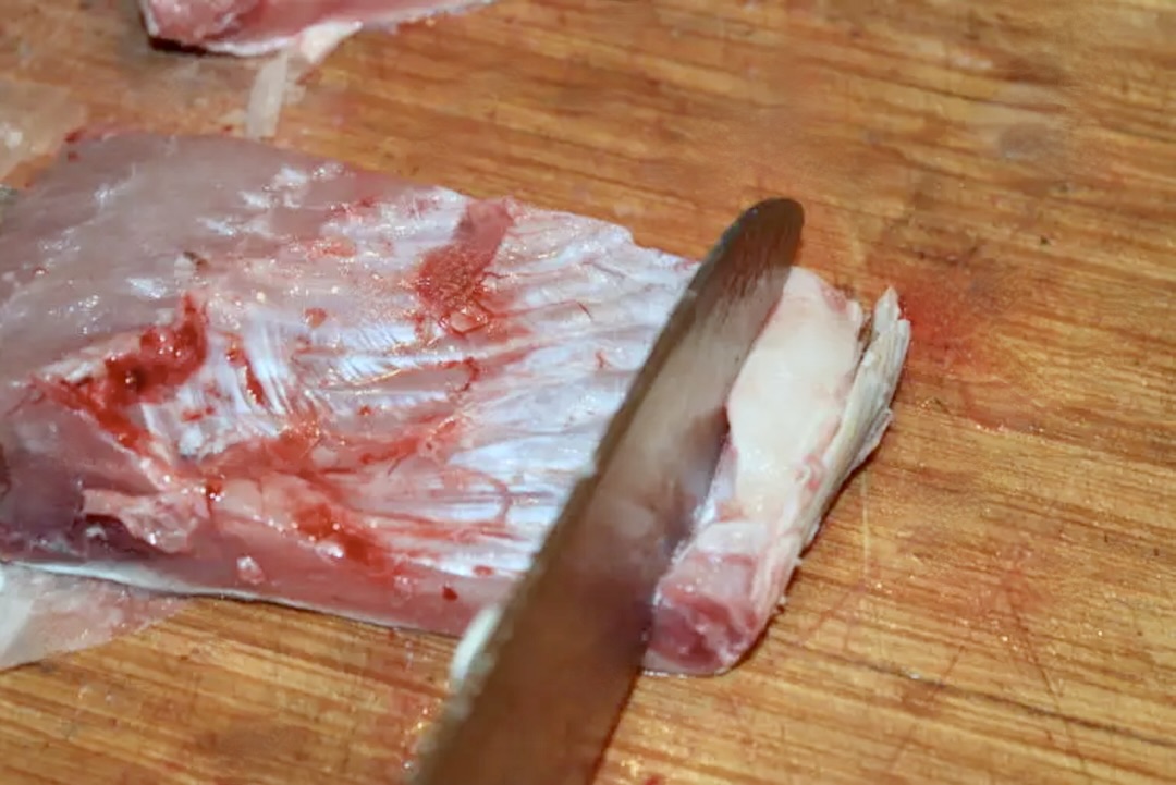 Z każdego fileta odkrój tzw. „brzuszki”. Pamiętaj, że zabitej rybie należy się szacunek. Straciła życie, żebyśmy my mogli ją zjeść. Zatem nigdy nie wyrzucaj jej elementów, które można jeszcze wykorzystać. Z odkrojonych elementów ugotuj np. bulion rybny.