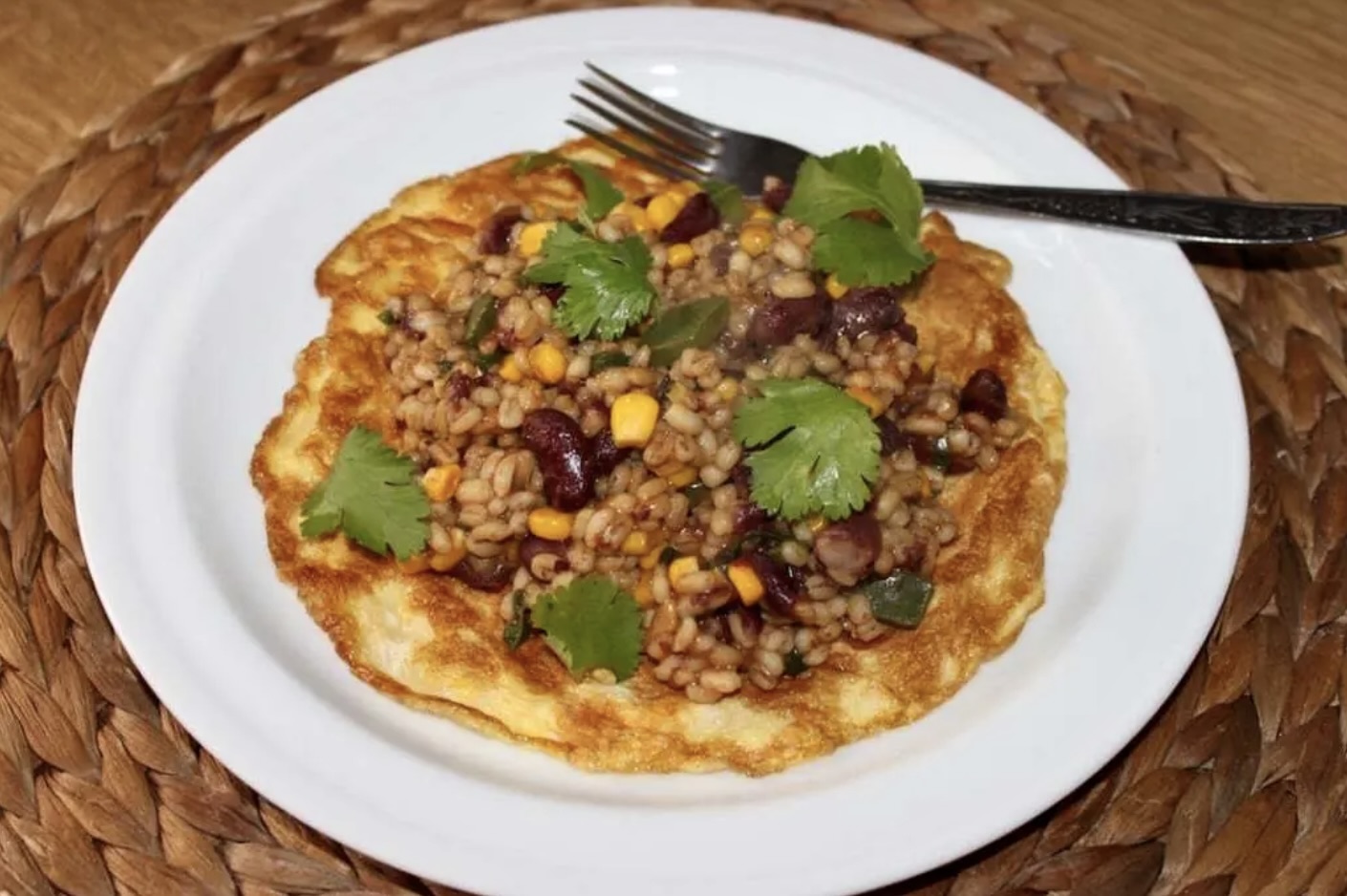 Kasza pęczak z fasolą na omlecie na ostro