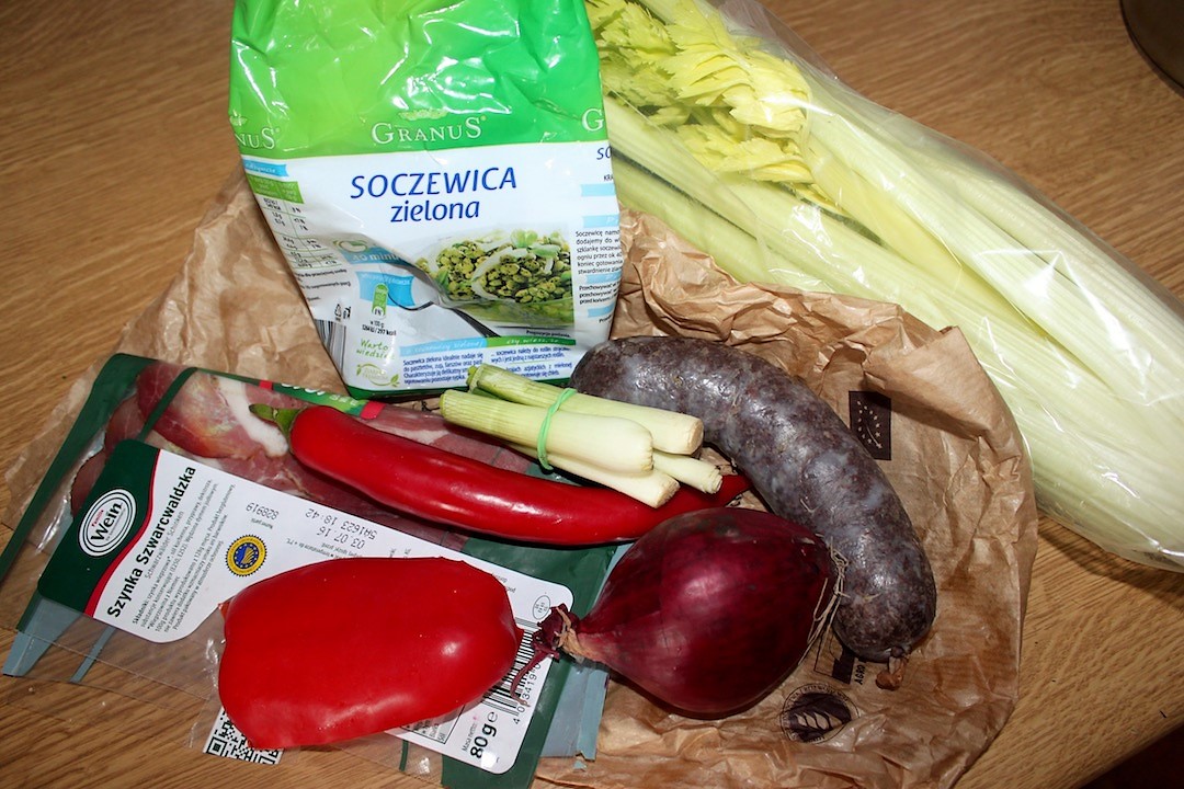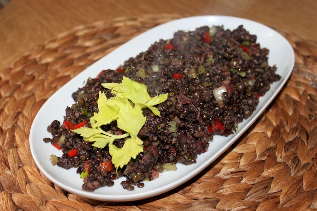 Jest to danie dla amatorów kaszanki, które łączy ją z wysokobiałkową soczewicą i dużą ilością krótko przesmażonych warzyw.