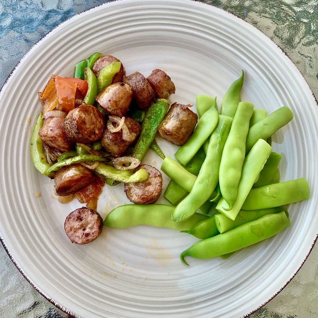 Wskazówka autora: W tym daniu to kiełbaski grają główną rolę – warzywa powinny stanowić około 30% całości potrawy.