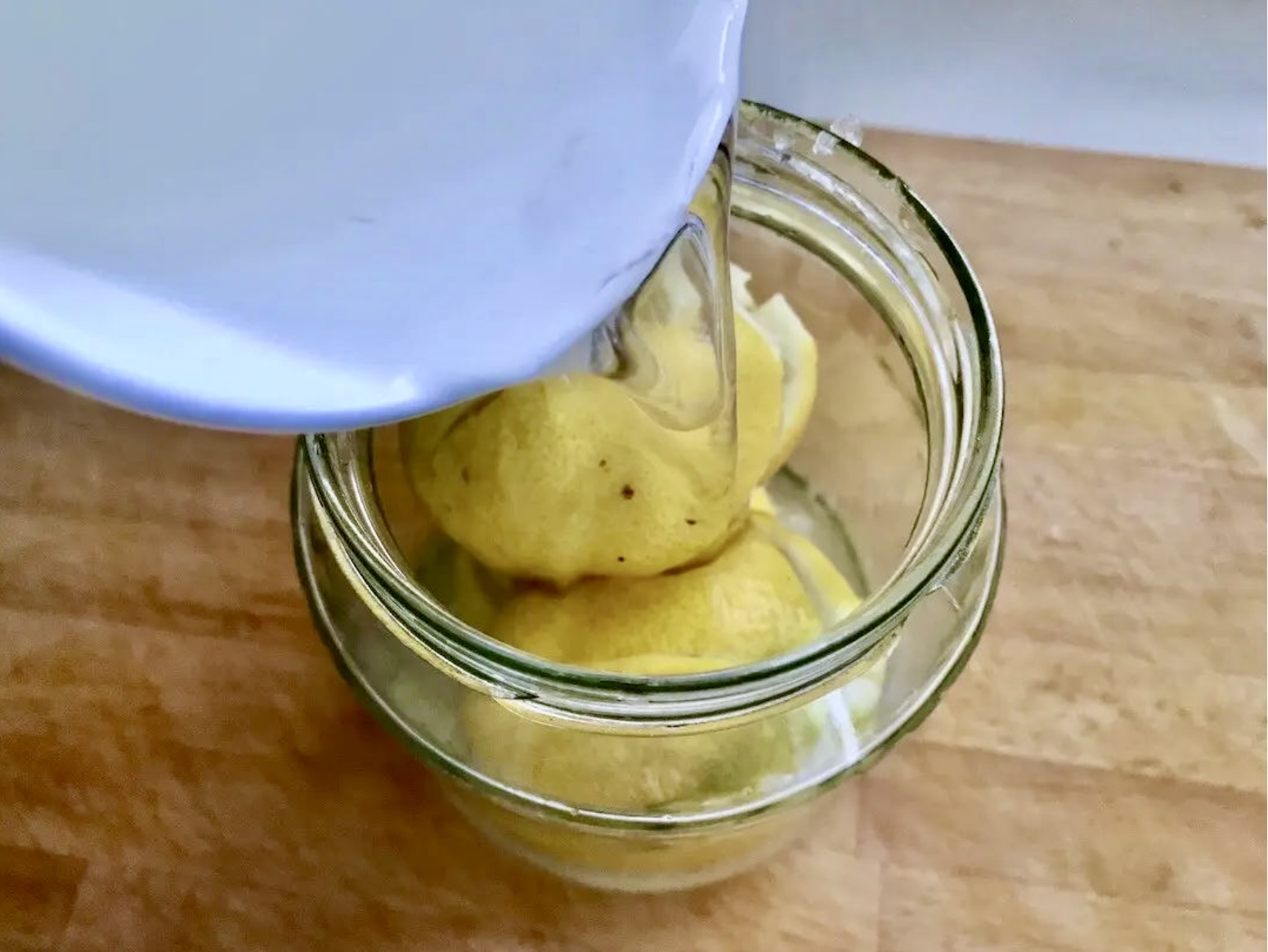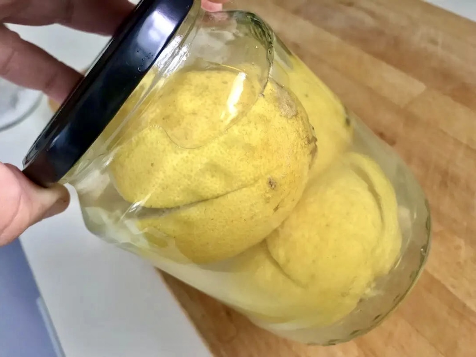 Zalewanie: Całość zalej ciepłą wodą. Cytryny powinny przylegać do siebie na tyle, aby pozostały przykryte wodą i nie podniosły się.