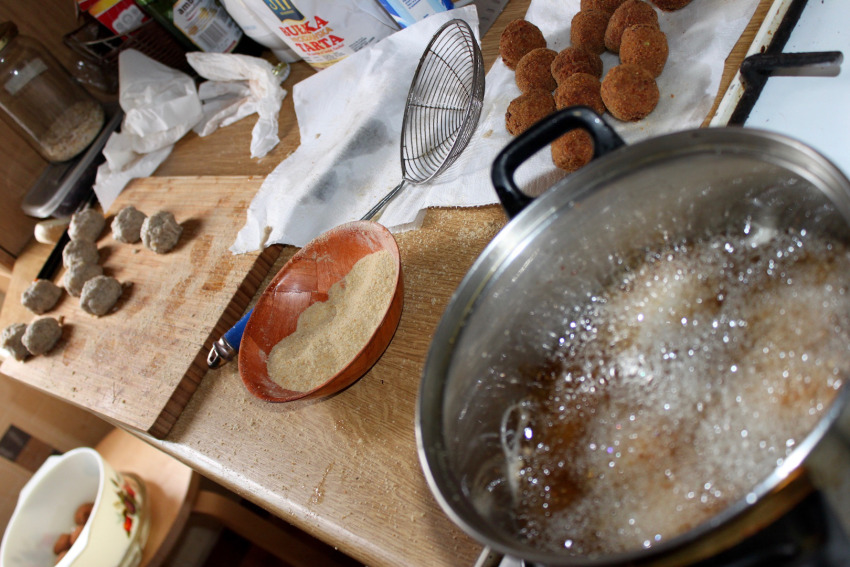 Smaż klopsiki w głębokim, niezbyt gorącym tłuszczu na złocisty kolor.
