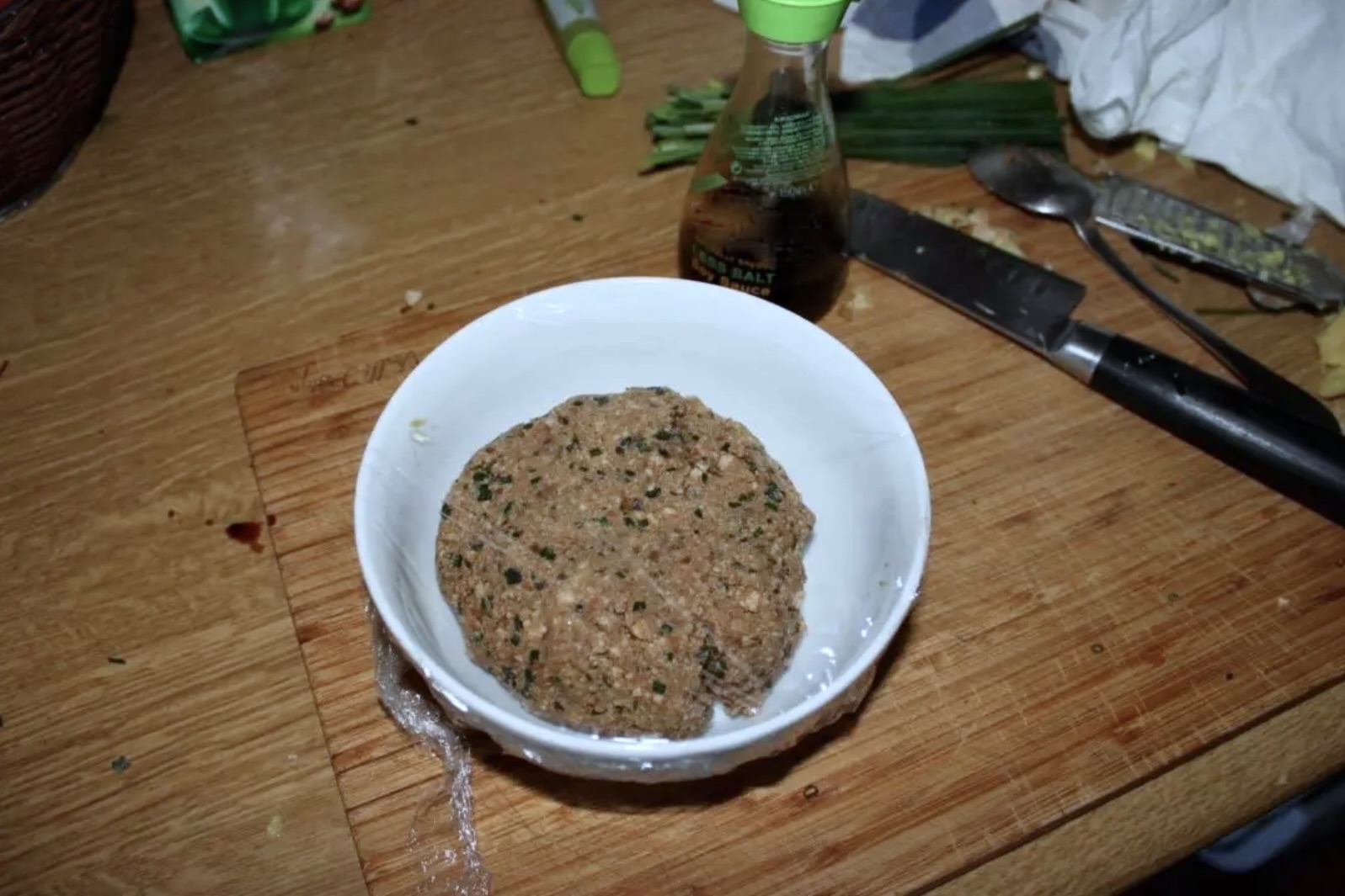 Odpoczynek: Masę dokładnie wymieszaj, dopraw do smaku solą i pieprzem. Miskę owiń folią spożywczą i wstaw do lodówki na 30 minut, aby smaki się przegryzły.