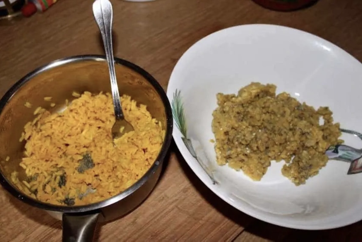 W osobnym garnku ugotuj około 50 gramów ryżu z dodatkiem połowy łyżeczki kurkumy. Ryż przestudź.