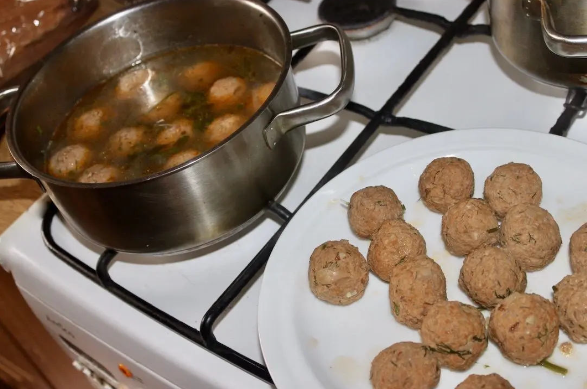 Gotowanie: W garnku zagrzej wywar. Wrzuć do niego odkrojone łodygi koperku dla smaku. Klopsy gotuj partiami przez ok. 10 minut. Po ugotowaniu wyjmij je na talerz.
