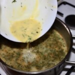 Zdejmij garnek z ognia. Rozmieszaj 2 żółtka z odrobiną gorącego sosu (hartowanie), a następnie wlej do garnka, a następnie wymieszaj.