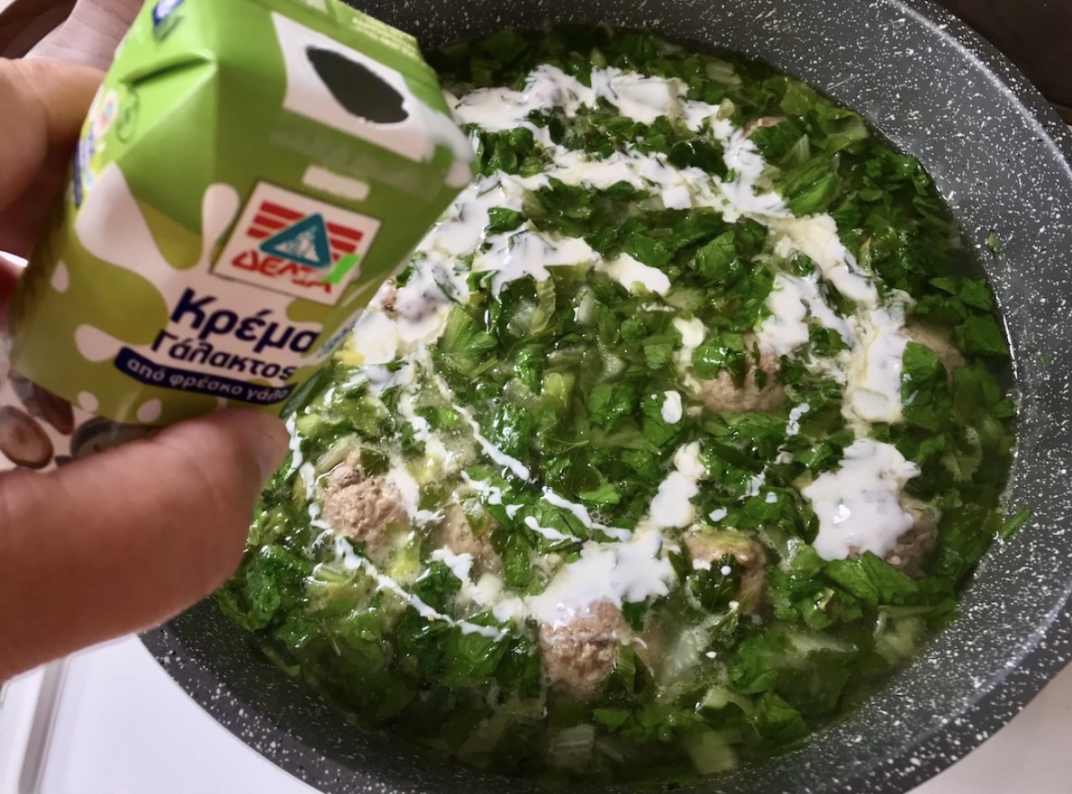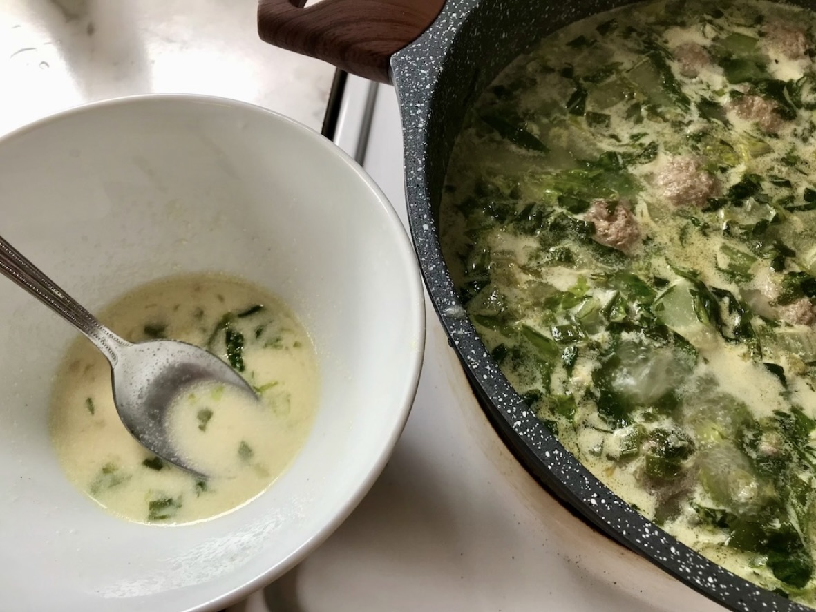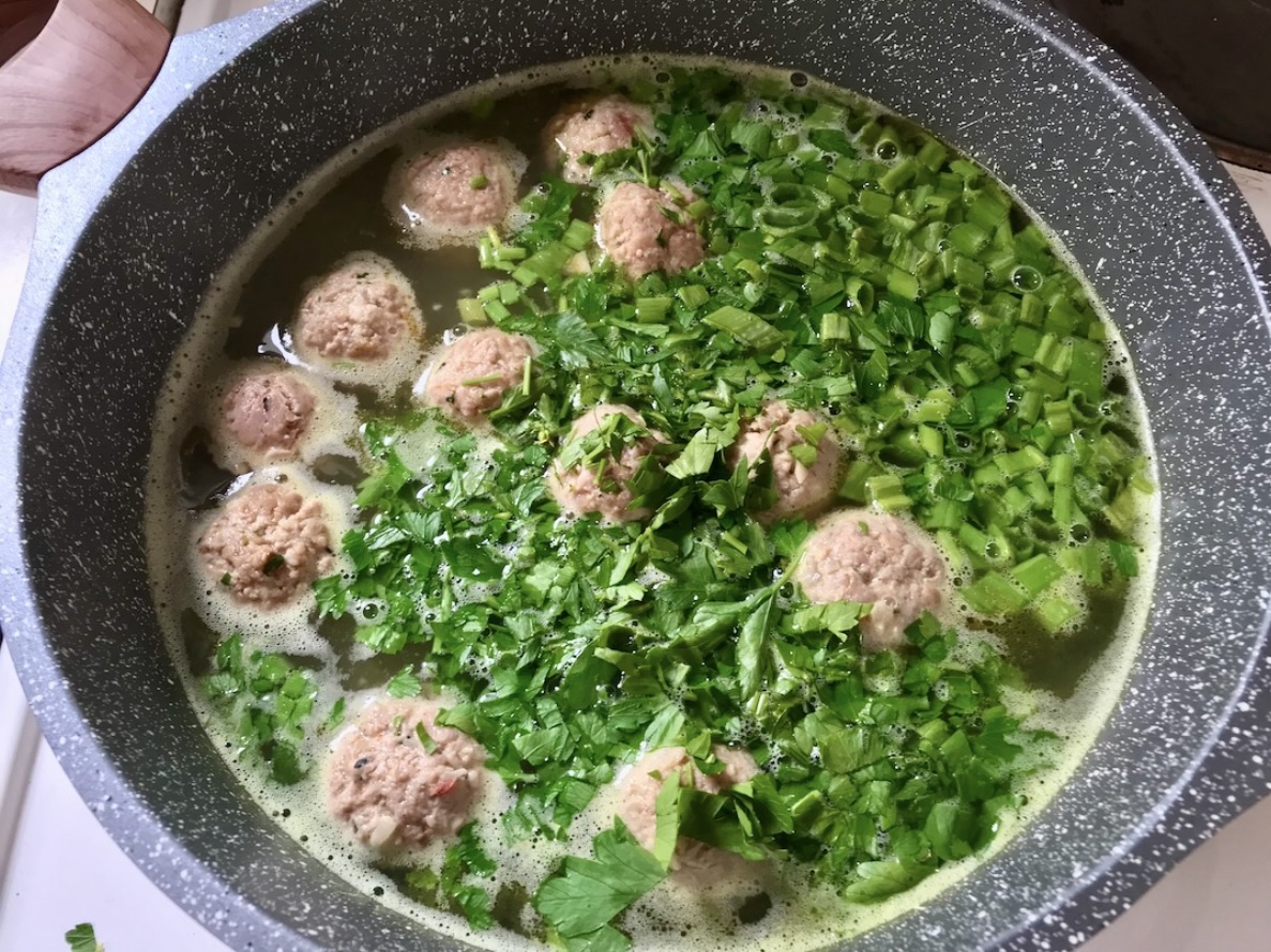 Dodatki ziołowe: Posiekaj dużą garść dymki oraz natki pietruszki. Dodaj zioła do bulionu z klopsami i gotuj pod przykryciem przez 10 minut.