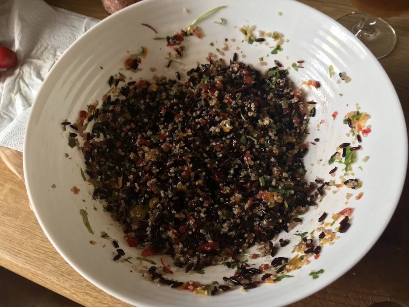 Przygotuj dziki ryż z komosą i warzywami (zobacz przepis na dziki ryż z komosą).