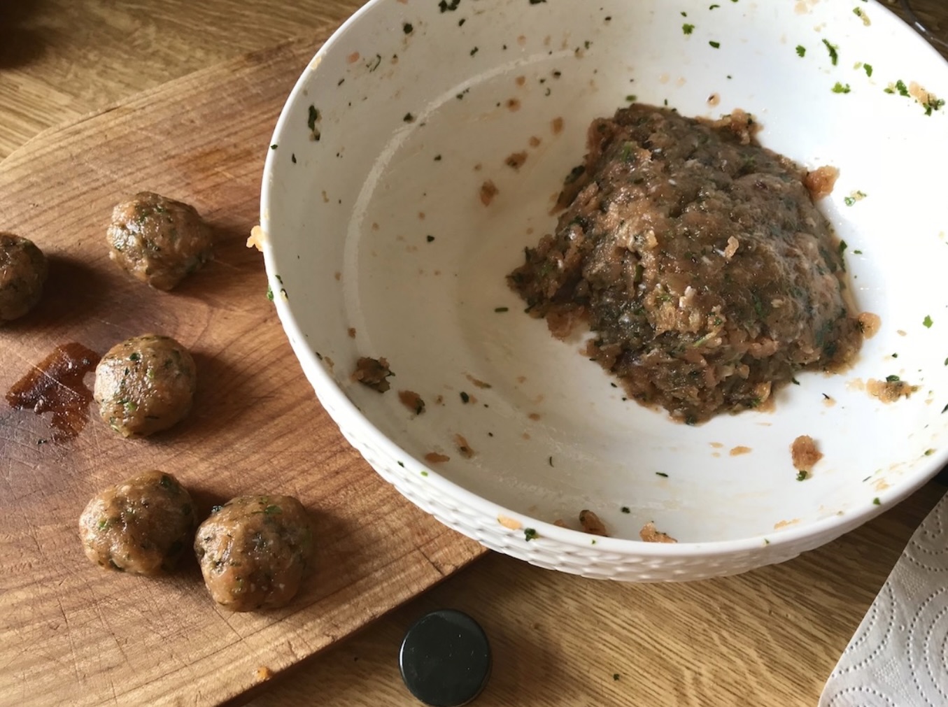 Chłodzenie: Miskę z masą na klopsy owiń folią spożywczą i wstaw do lodówki na 30 minut, aby smaki się przegryzły.