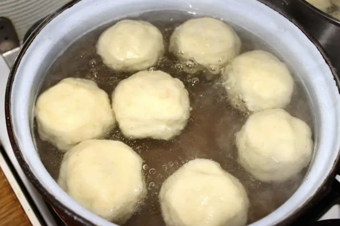 Knedle wrzucaj na wrzącą, osoloną wodę.