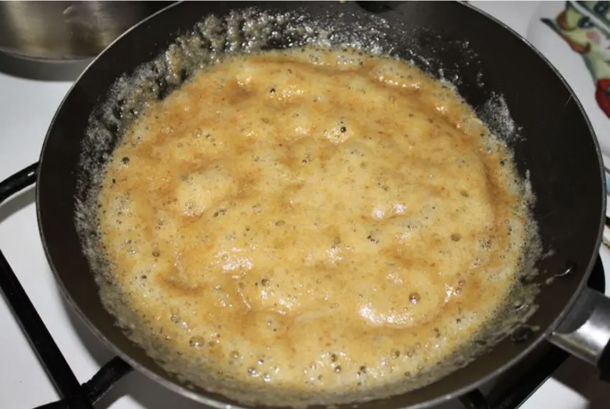 Na patelni roztop masło i dodaj bułkę tartą. Smaż, aż się zrumieni.