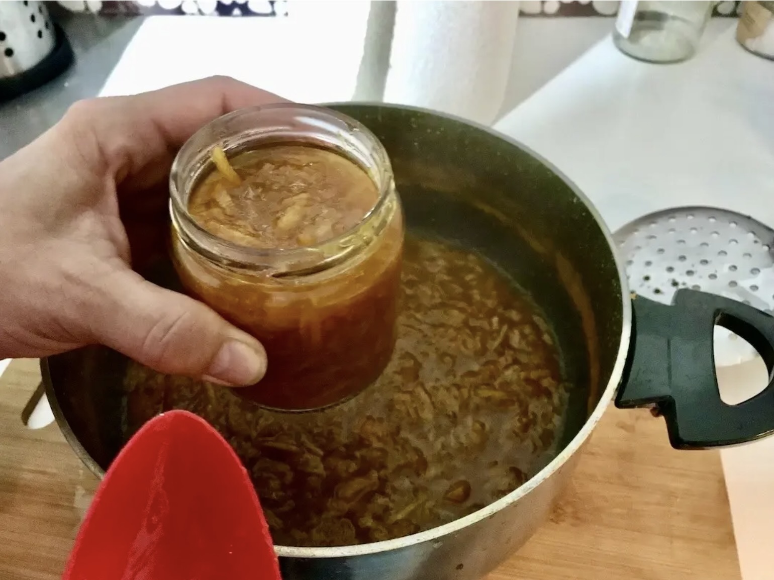 Gdy konfitura jest gotowa, nakładaj ją gorącą do wyparzonych słoiczków, a następnie pasteryzuj.
