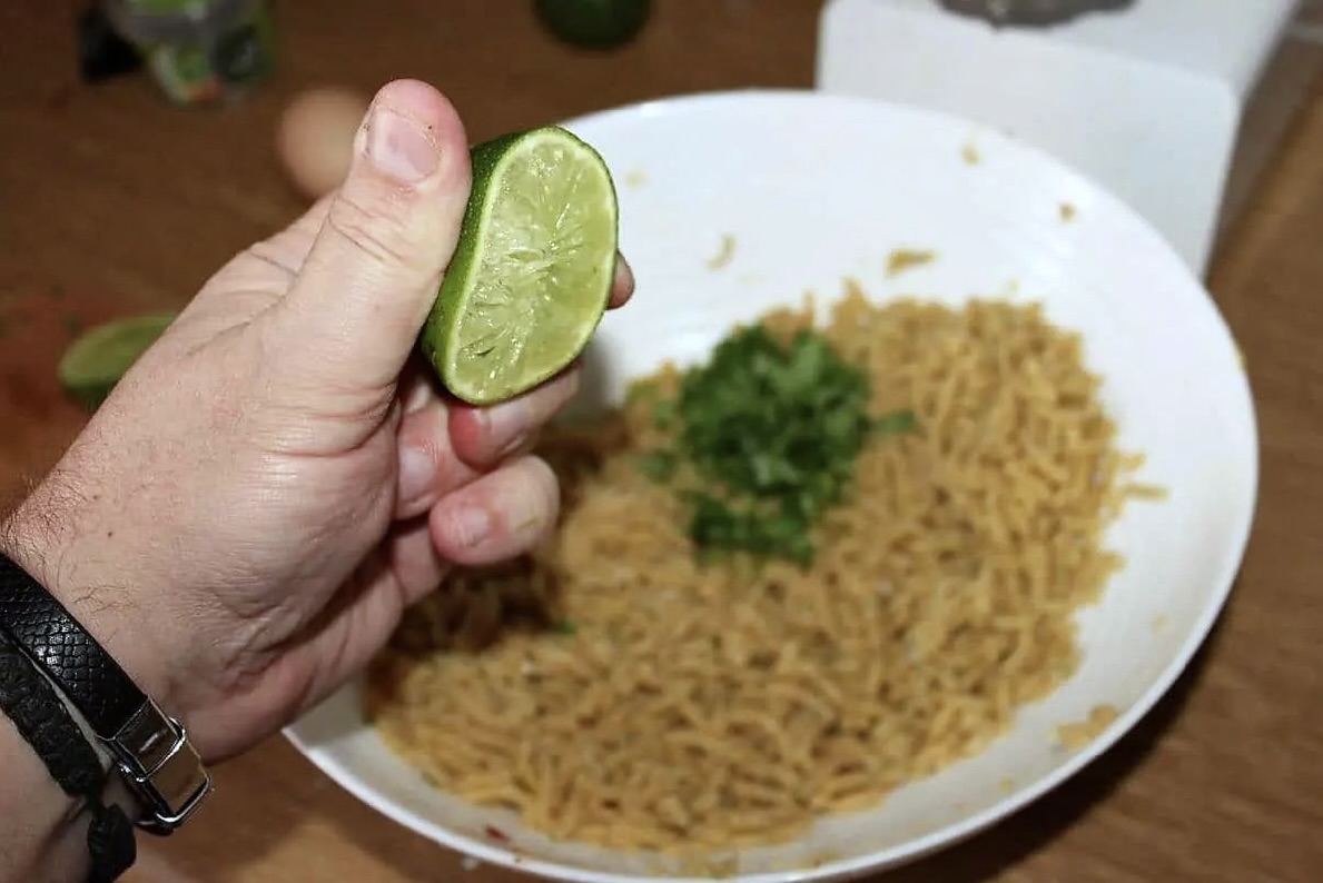 Doprawianie: Do masy dodaj posiekaną kolendrę oraz sok wyciśnięty z limonki. Wymieszaj, spróbuj i w razie potrzeby dopraw dodatkowym sosem sojowym.
