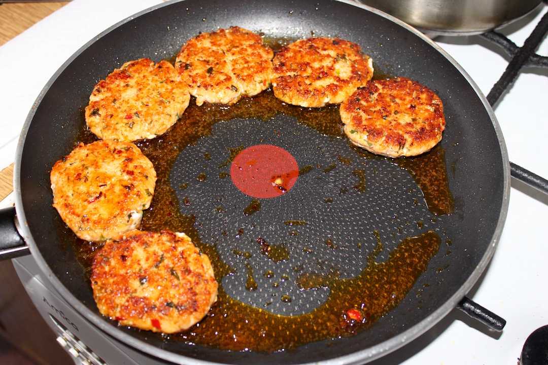 Smażenie: Formuj niewielkie kotleciki. Smaż na średnim ogniu przez około 4-5 minut łącznie (2-3 minuty z każdej strony). Ważne, aby ich nie przetrzymać, by nie stały się suche.