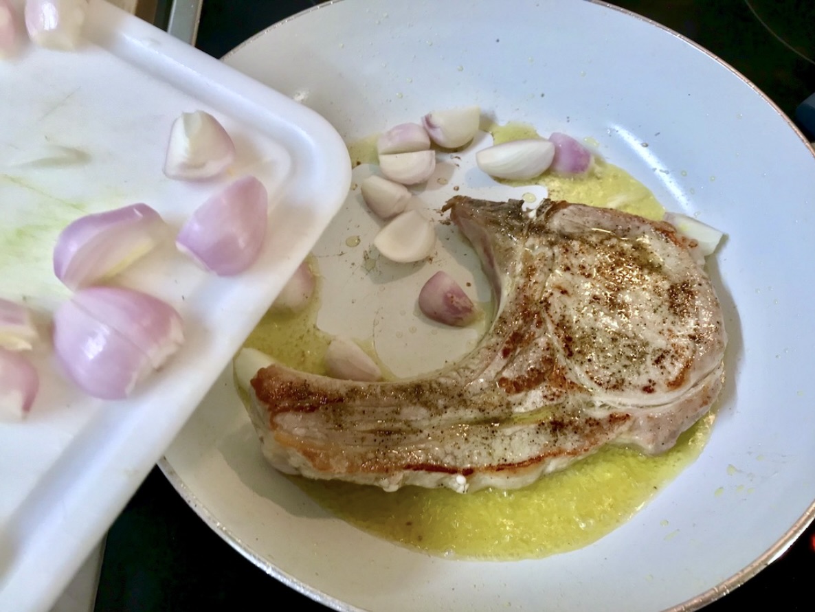 Dodatki: Do zrumienionego mięsa wrzuć szalotki i smaż przez około 2 minuty, aż się zeszklą. Następnie dodaj czosnek i smaż jeszcze 2 minuty (uważaj, by go nie przypalić).