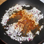 Smażenie dodatków: Na patelni rozgrzej nieco oliwy. Wrzuć cebulę i zeszklij ją. Następnie dodaj zmiażdżony czosnek i łyżeczkę ulubionej przyprawy. Smaż krótko (nie dłużej niż 30 sekund), mieszając.