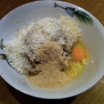 Wyrabianie masy: Uzyskaną masę przełóż do dużej miski. Wbij jajko, dodaj bułkę tartą oraz około 100 g startego sera (np. mieszankę fety i parmezanu).