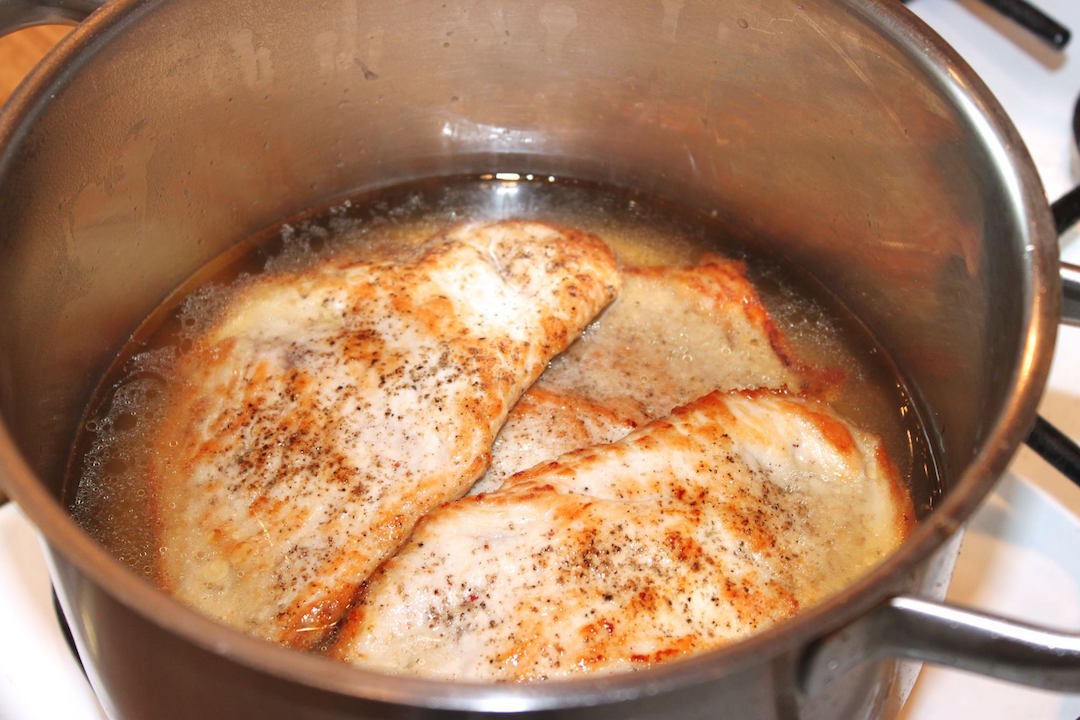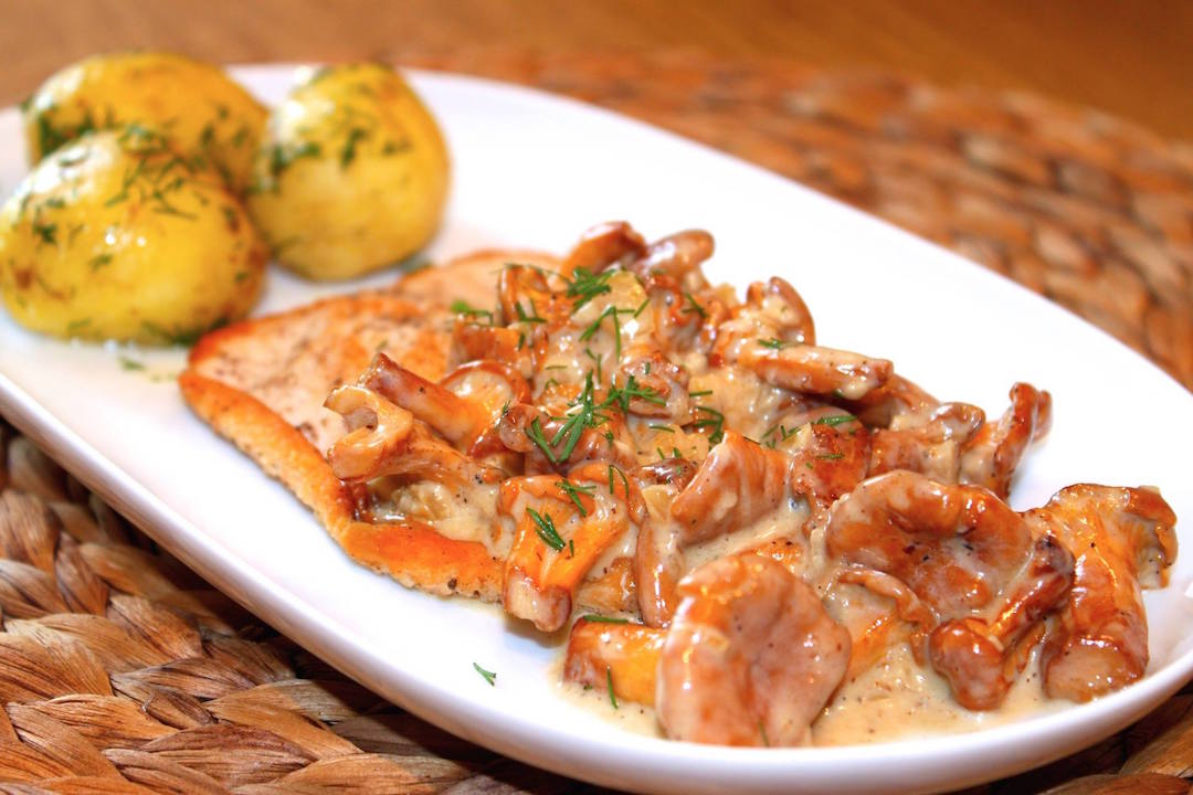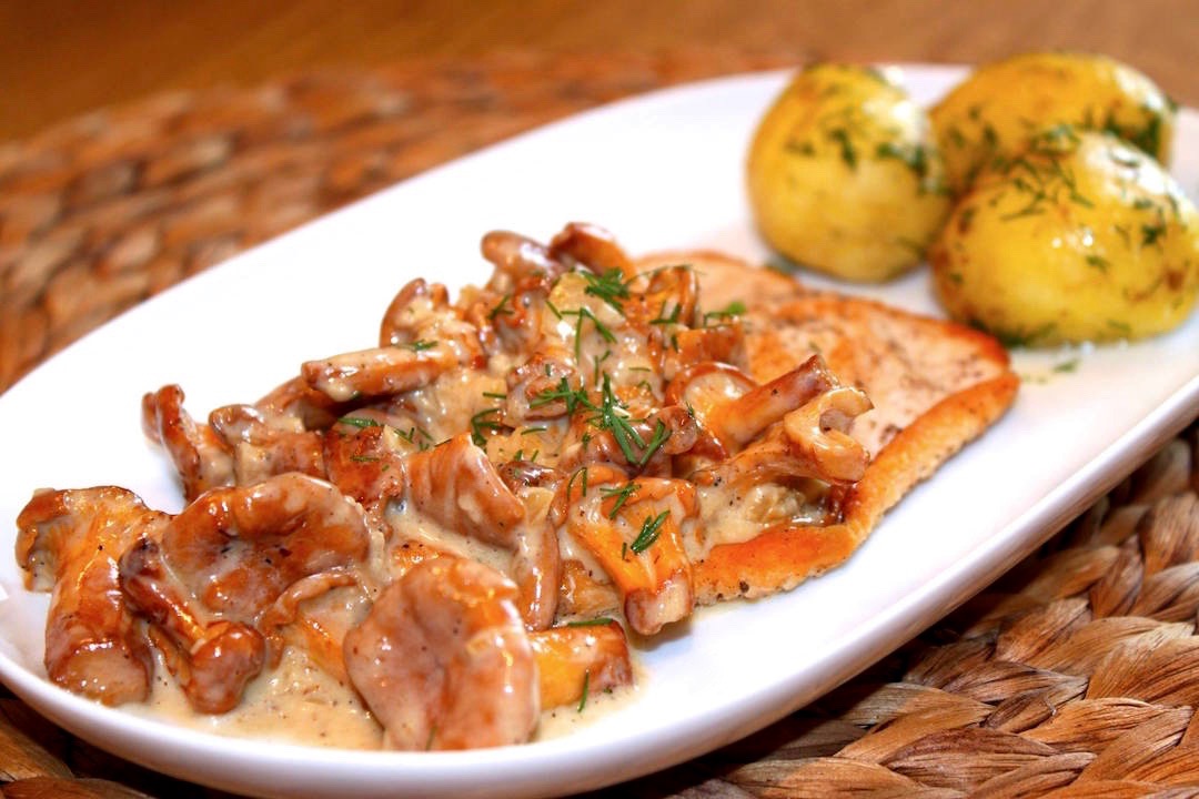 Kotlety z indyka w sosie kurkowym zawsze proponuję na początek każdego sezonu grzybowego. To kotlety z indyka smażone saute, a następnie duszone w aromatycznym sosie kurkowym, na koniec doprawione słodką śmietanką. Aromatyczny sos kurkowy, a do niego delikatne kotlety z indyka plus młode ziemniaki z koperkiem. Brzmi chyba nieźle, prawda? Grzyby najpierw oczyszczam nożykiem lub pędzelkiem, by tuż przed ich obróbką przelać je bieżącym strumieniem zimnej wody przez max 3 sekundy. To wszystko wystarcza, by pozbyć się nieczystości. Tak skomponowane danie, czyli kotlety z indyka w sosie to kwintesencja smaku lata, ale i do odtworzenia zimą z zastosowaniem mrożonych kurek.