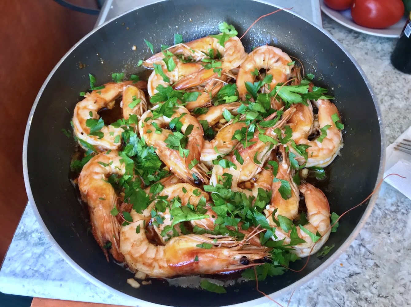 Krewetki po hiszpańsku to jeden z moich ulubionych sposobów serwowania krewetek, ponieważ wymagają jedynie dobrej oliwy, czosnku i natki pietruszki. Ich przygotowanie jest błyskawiczne, a czosnkowy sos oliwny jest naprawdę super. Tak przygotowane krewetki podawaj z kromką białego pieczywa, którą po zjedzeniu krewetek należy „wyczyścić” talerz. Mój przepis różni się nieco od oryginalnego hiszpańskiego, gdzie krewetki podawane są w casuelach (gliniane naczynia do zapiekania i podawania tapas) i „pływają” w oliwie. U mnie oliwy jest mniej, a i sposób przyrządzenia krewetek nieco inny. W obu przypadkach gwarantuję jednak niepowtarzalny smak krewetek.